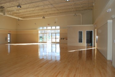features 2800 square feet of dance space on a sprung wood floor. Ample parking is available on site.